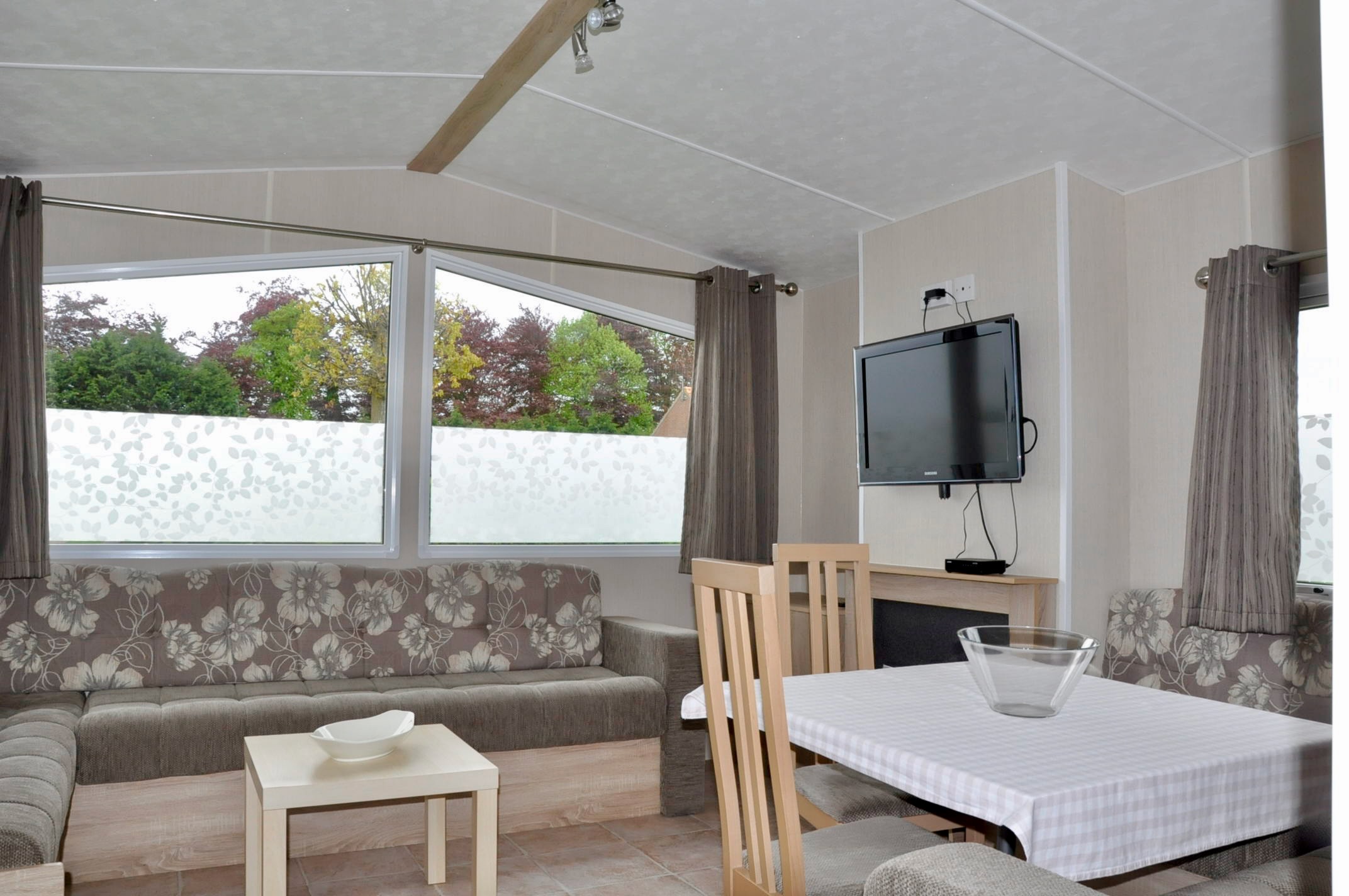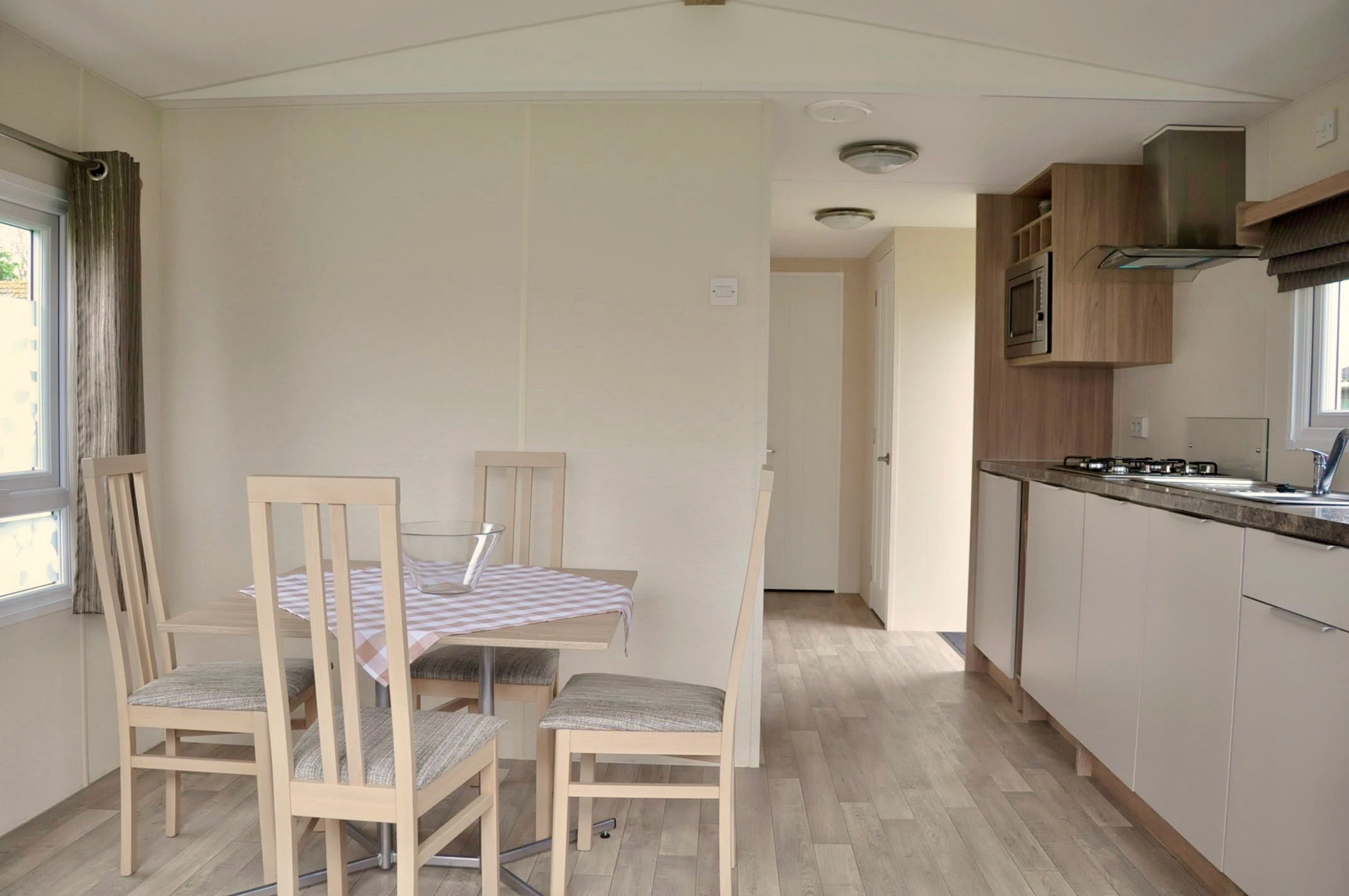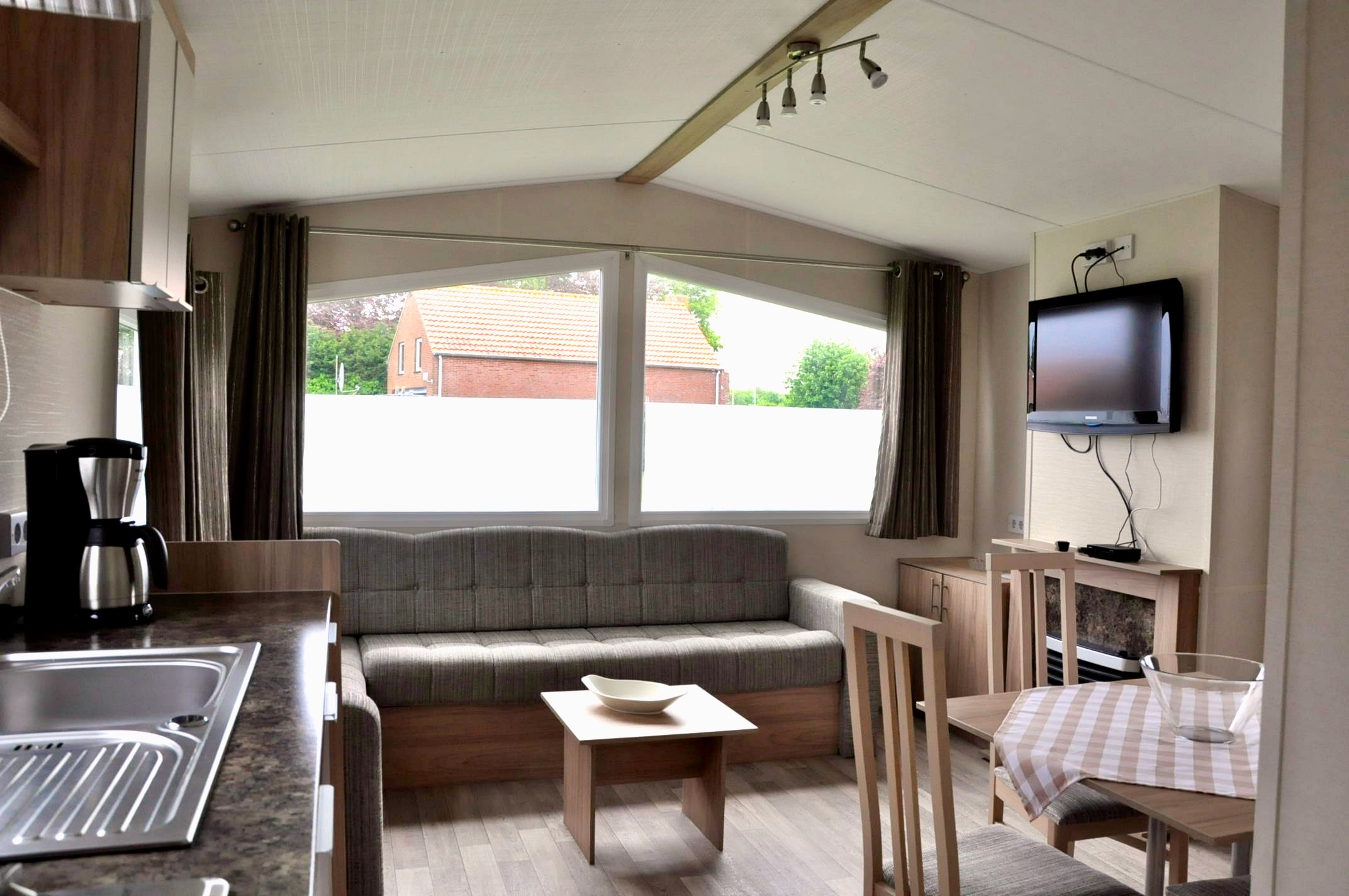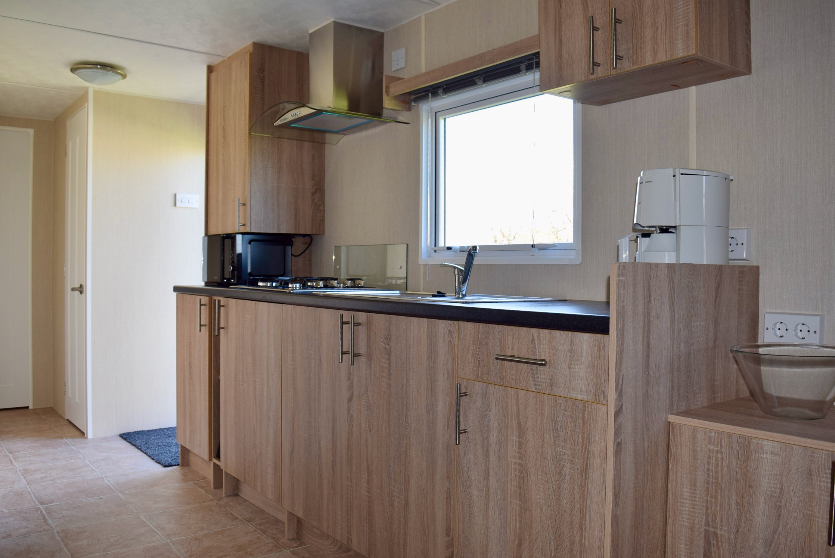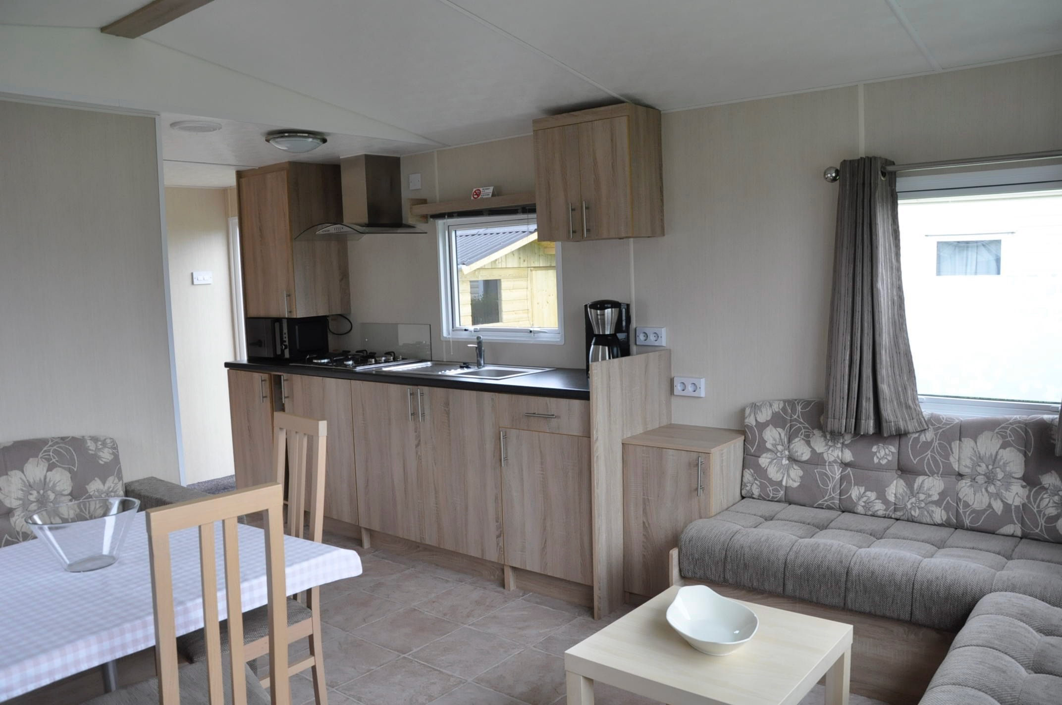 Op de camping zijn 4 persoons stacaravans met 2 slaapkamers te huur. Elke caravan heeft een eigen badkamer, keuken, eet- en zithoek.